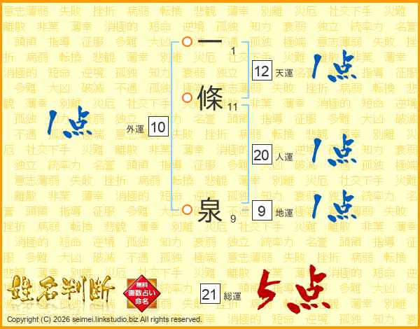一條泉さんの総運は21画の5点!