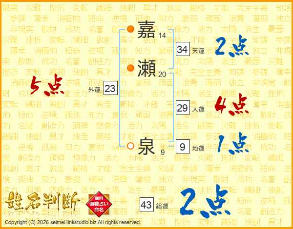 嘉瀬泉さんの外運は23画の5点!