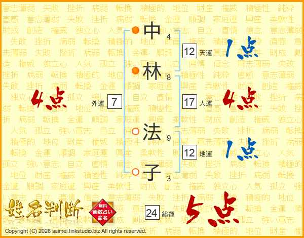中林法子さんの総運は24画の5点!