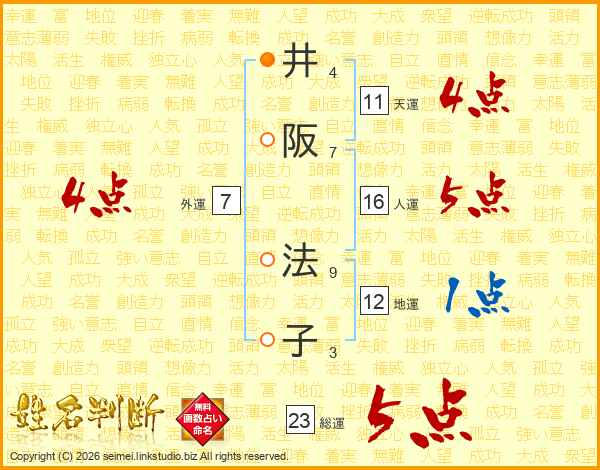 井阪法子さんの天運は11画の4点!