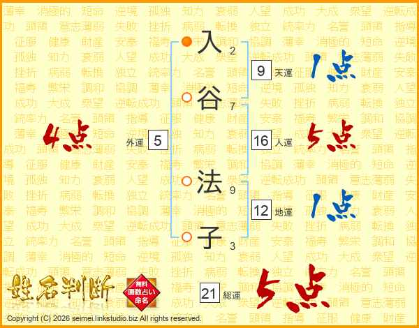 入谷法子さんの総運は21画の5点!