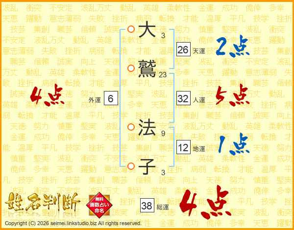 大鷲法子さんの総運は38画の4点!