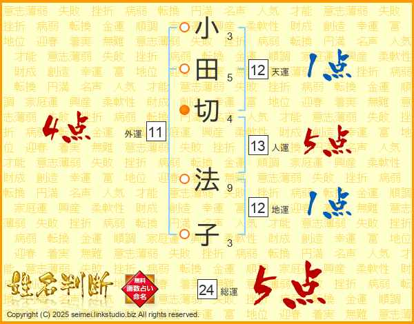 小田切法子さんの総運は24画の5点!