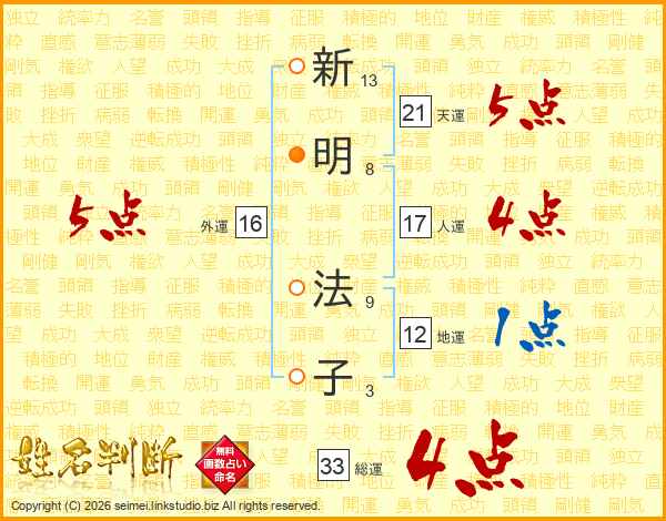 新明法子さんの総運は33画の4点!