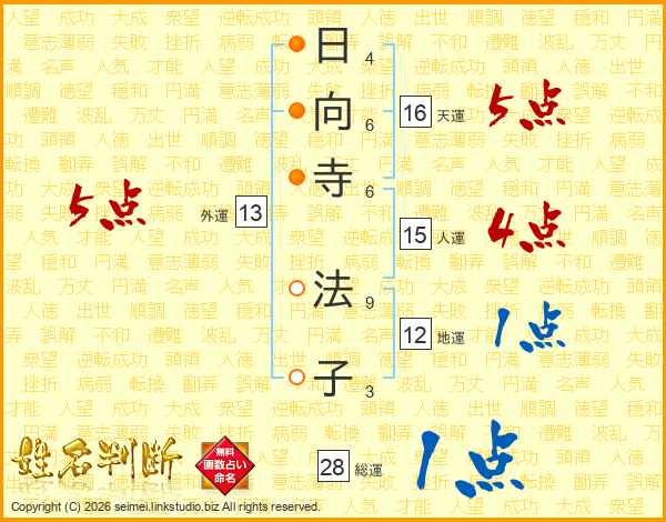 日向寺法子さんの天運は16画の5点!