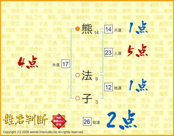 熊法子さんの総運は26画の2点!