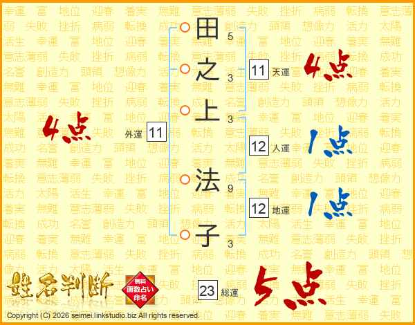 田(5画)之(3画)上(3画) 法(9画)子(3画)