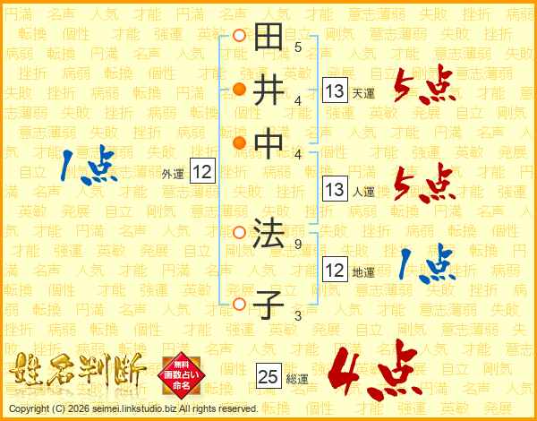 田井中法子さんの総運は25画の4点!
