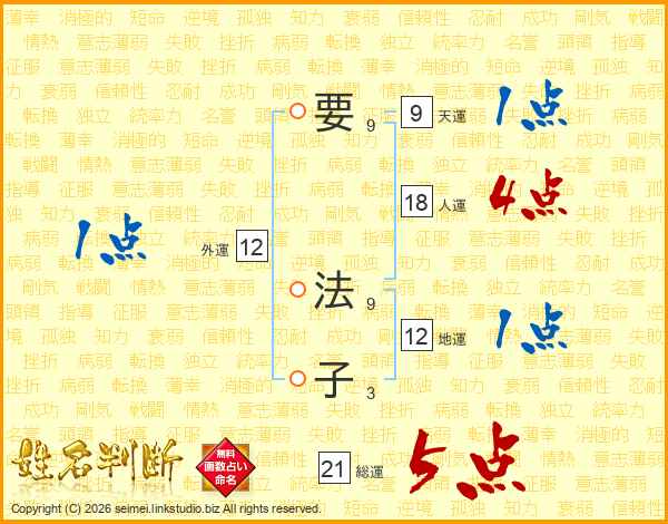 要法子さんの総運は21画の5点!