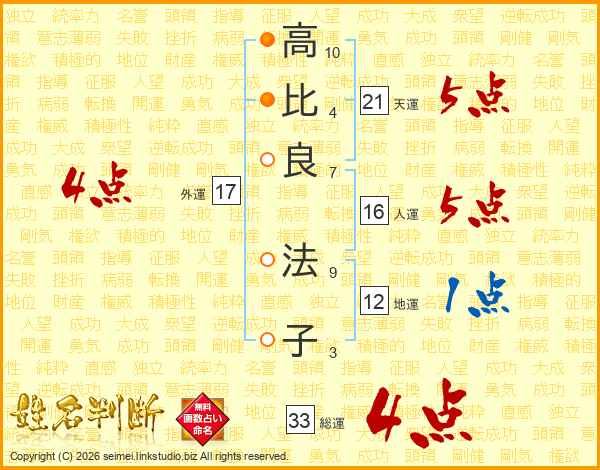 高(10画)比(4画)良(7画) 法(9画)子(3画)
