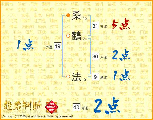 桑(10画)鶴(21画) 法(9画)
