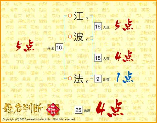 江波法さんの総運は25画の4点!