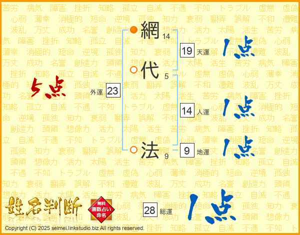 網代法さんの人運は14画の1点!