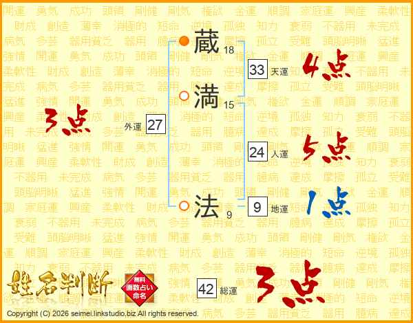 蔵満法さんの天運は33画の4点!