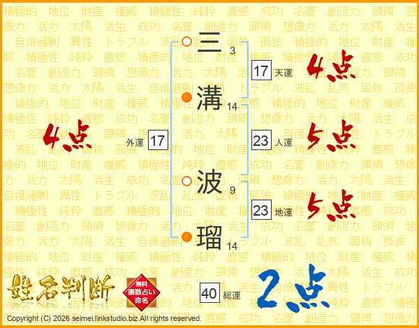 三溝波瑠さんの総運は40画の2点!