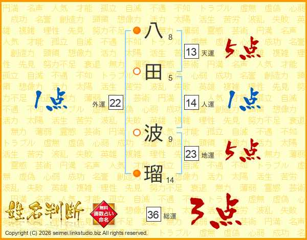 八田波瑠さんの総運は36画の3点!