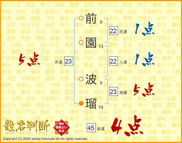 前園波瑠さんの総運は45画の4点!