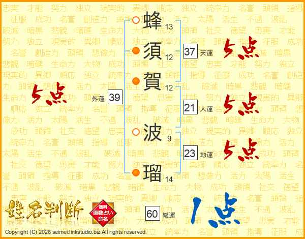 蜂須賀波瑠さんの総運は60画の1点!