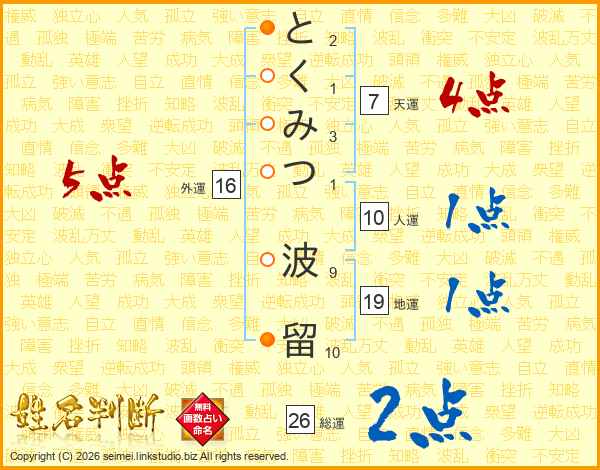 とくみつ波留さんの総運は26画の2点!