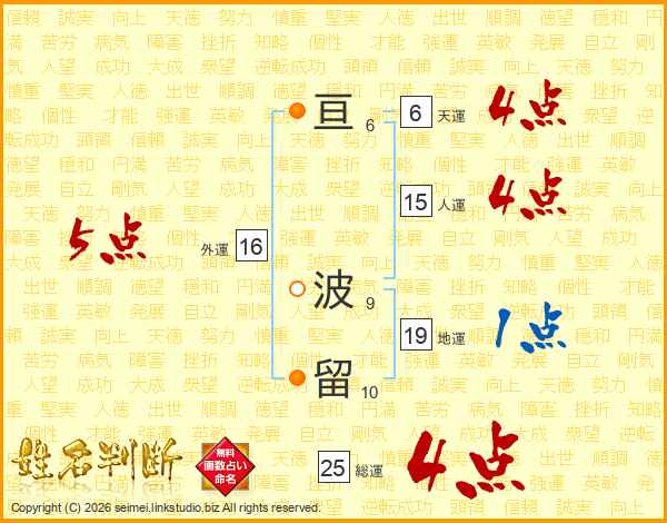 亘波留さんの総運は25画の4点!