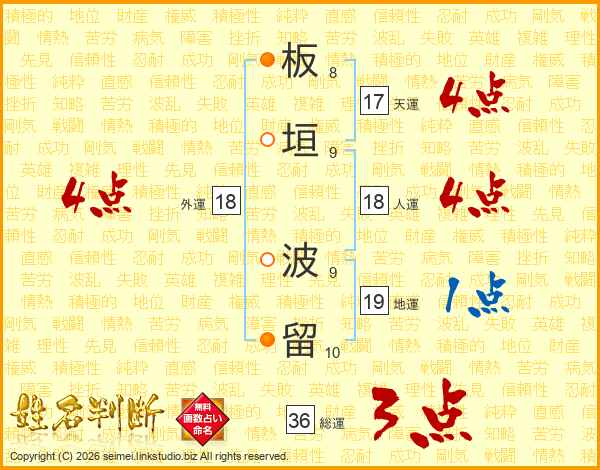 板垣波留さんの天運は17画の4点!