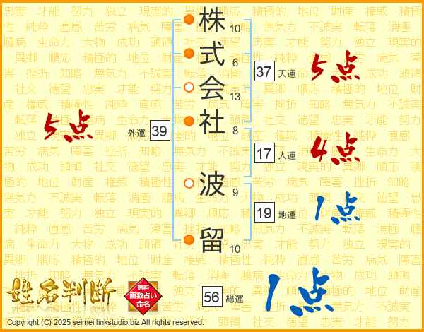 株式会社波留さんの天運は37画の5点!
