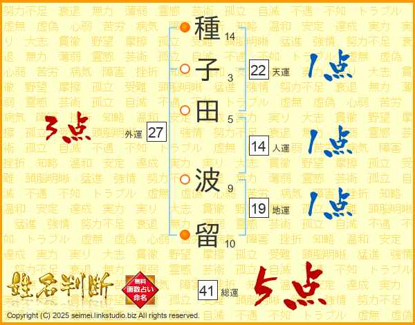 種(14画)子(3画)田(5画) 波(9画)留(10画)