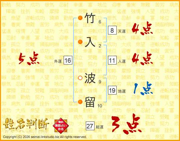 竹入波留さんの総運は27画の3点!