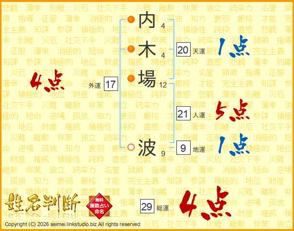 内(4画)木(4画)場(12画) 波(9画)