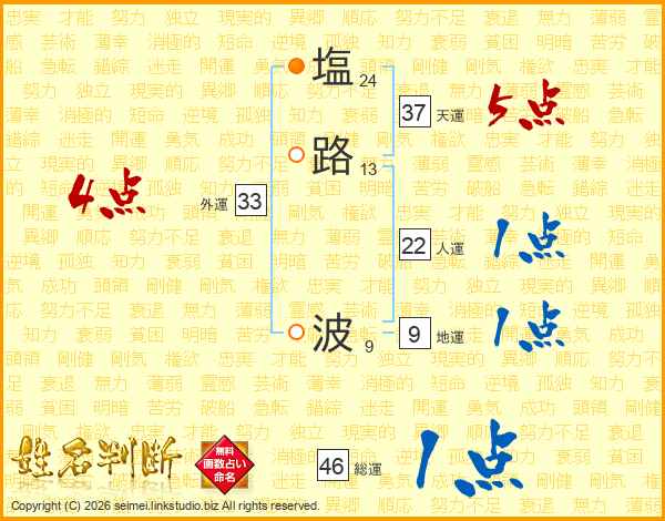 塩(24画)路(13画) 波(9画)