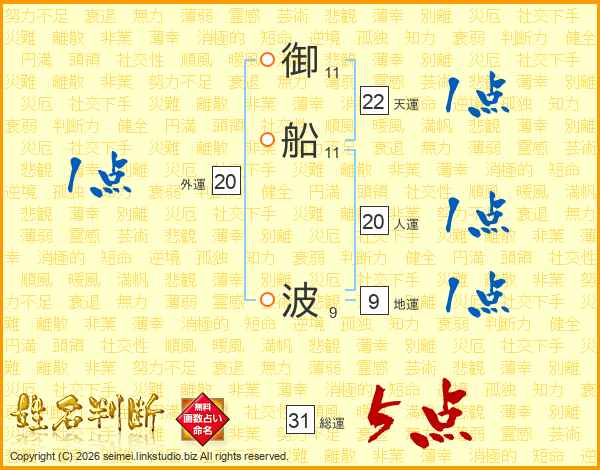 御船波さんの総運は31画の5点!
