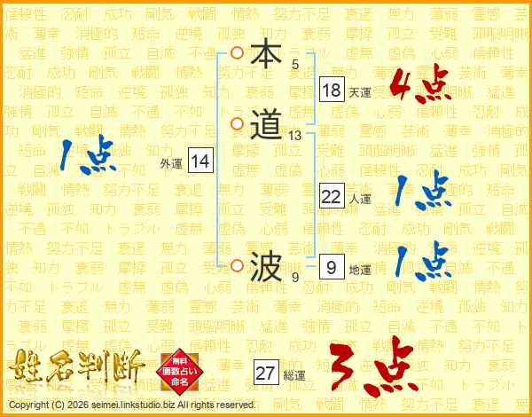 本道波さんの人運は22画の1点!