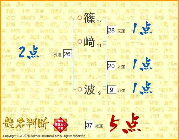 篠﨑波さんの総運は37画の5点!