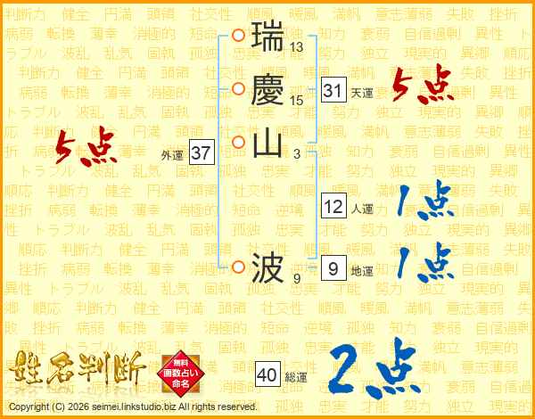 瑞慶山波さんの総運は40画の2点!