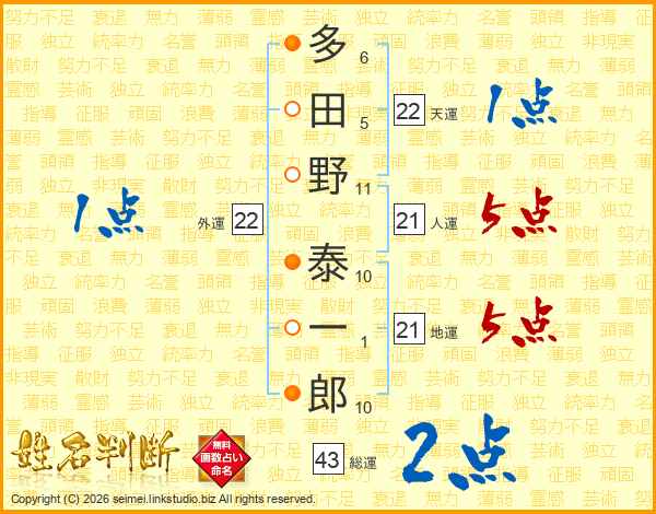 多田野泰一郎さんの人運は21画の5点!