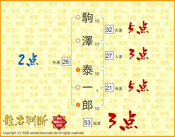 駒澤泰一郎さんの天運は32画の5点!
