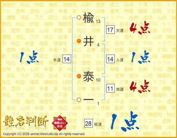 楡井泰一さんの人運は14画の1点!