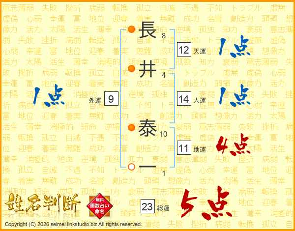 長井泰一さんの総運は23画の5点!