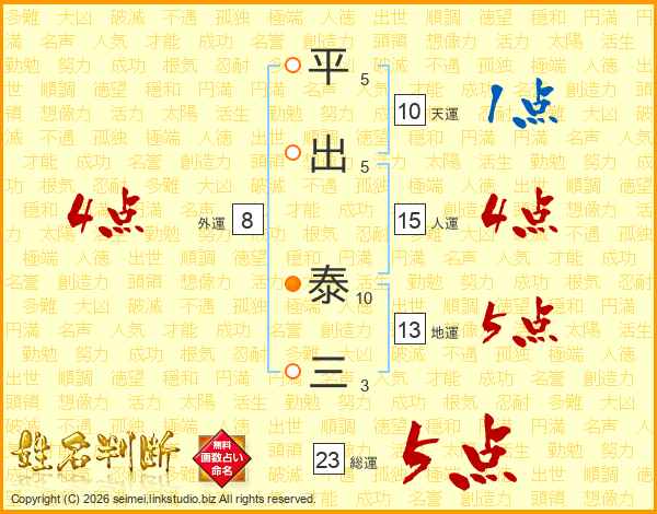 平出泰三さんの総運は23画の5点!