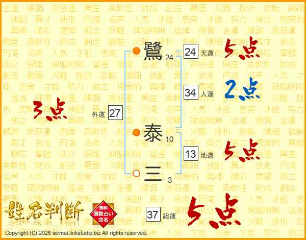 鷺泰三さんの総運は37画の5点!