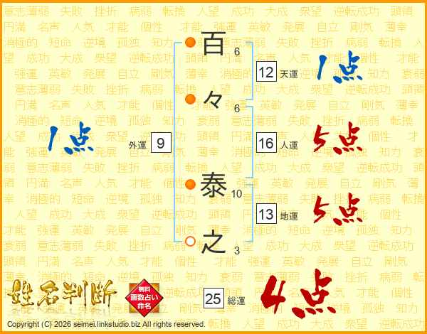 百々泰之さんの総運は25画の4点!