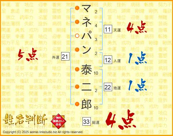 マネパン泰二郎さんの総運は33画の4点!