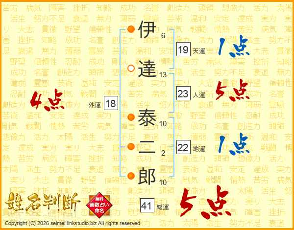 伊達泰二郎さんの総運は41画の5点!