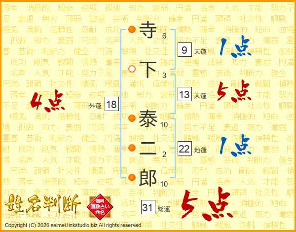 寺下泰二郎さんの総運は31画の5点!