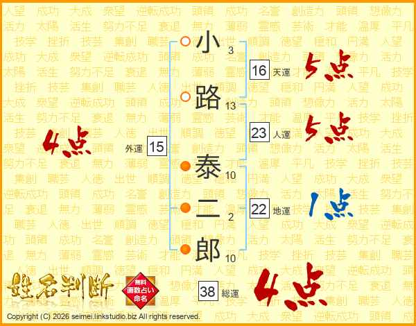 小(3画)路(13画) 泰(10画)二(2画)郎(10画)