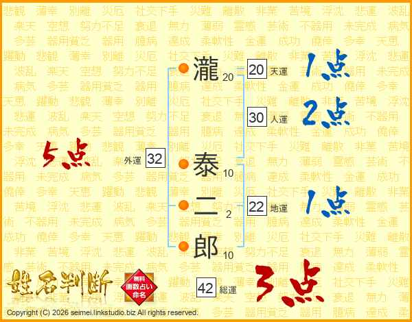瀧泰二郎さんの外運は32画の5点!