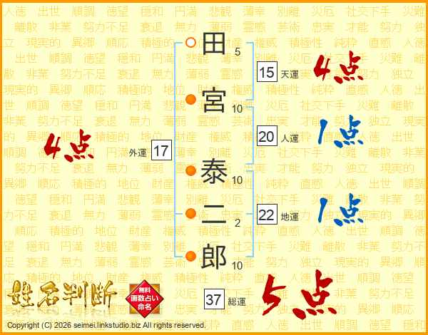 田宮泰二郎さんの総運は37画の5点!