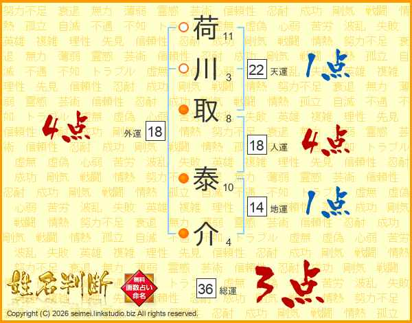荷川取泰介さんの人運は18画の4点!