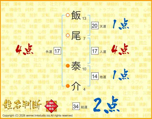 飯尾泰介さんの人運は17画の4点!