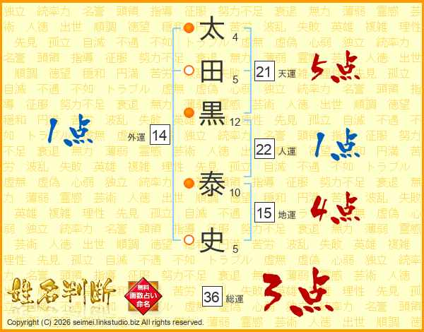 太田黒泰史さんの天運は21画の5点!